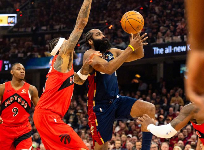 季后赛首组2-0!哈登28分5断迎里程碑,骑士轻取猛龙,米切尔30分